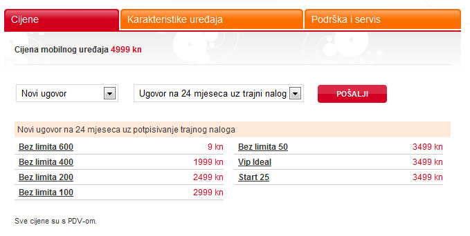 Da puno je to novaca. Ne znam jedini kako funkcioniraju te vipove tarife. Znam da dobijes 50% popusta na mjesecnu tarifu tijekom prve godine. Bitna informacija je moze li se nakon nekog vremena tarifa smanjiti. Tako bi recimo mogla potpisat 400kn placćati 200kn, a nakon godinu dana smanjiti tarifu na 200kn. Time se telefon dobije jeftinije. Ne znam ima li vip takvu praksu ili ne. Nekada sam tako kupovao u T-mobile