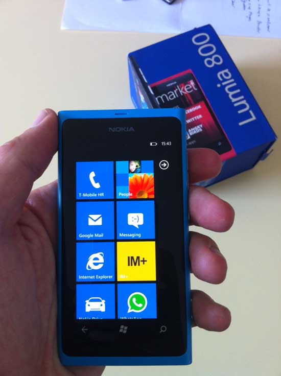 Da ukratko podsjetimo na osnovne informacije o uređaju. Nokia Lumia 800 je rezultat suradnje Nokie i Microsofta koji udruženim snagama pokušavaju Windows Phone platformu izdići sa margina tržišta. Lumia 800 uistinu je zanimljiv pametni telefon prekrasna dizajna i respektabilnih performansi. Lumiu 800 pokreće 1.4GHz procesor uz pomoć 512MB RAM-a. Prednjicu joj krasi 3.7” AMOLED ClearBlack zaslon razlučivosti 480 x 800. Unutra je i 16GB interne memorije za pohranu podataka, a straga 8MP kamera. Windows Phone 7.5 prati prste i jednostavno “klizi” po zaslonu.