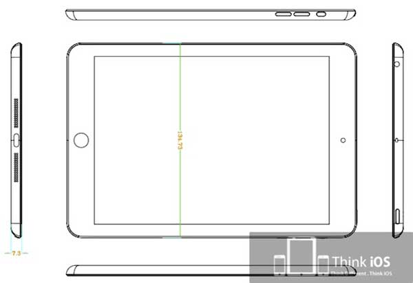 Prema navodnim procurjelim maskama i shemama novi iPad bi trebao imati 7” zaslon i ujedno biti najtanji tablet dosad viđen sa samo 7.3mm što ga smješta negdje u okvire iPod Toucha. Prema priloženim shemama, iPad mini će na donjem bridu imati novi umanjeni dock konektor s dva zvučnika sa svake strane. Lijevi brid je čist dok se s desne strane nalaze tipke za kontrolu glasnoće i sklopka za stišavanje odnosno kontrolu orijentacije zaslona. Gore se nalazi standardna POWER tipka te 3.55mm ulaz za slušalice