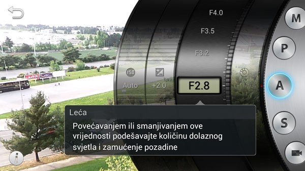 Sučelje kamere je jednostavno i pregledno pa čak i kad kliknete na onu strašni tipku Napredno. Tamo će vam se na zaslonu prezentirati simulator DSLR prstenova kojima ćete ručno ili pak poluautomatski podešavati sve gore spomenute vrijednosti. Ima i ona opcija između, zove se Pametno gdje odabirom nekog od preddefiniranih profila birate između postavki kao što su: panorama, zamrznuta akcija, bogati ton, zabava/interijer, hrana, makro, snijeg, zora, suton, pejzaž, najbolje lice, uzatopno snimanje, lagani trag, lijepo lice, najbolja fotografija…. ne da mi se više nabrajati. Shvatili ste.