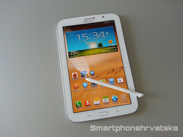 8-inčni TFT zaslon rezolucije 1280 x 800, što je sasvim OK za tu dimenziju zaslona. Prikaz je čist, pikseli se na normalnoj udaljenosti ne primjećuju, a inače se može pohvaliti i sasvim pristojnom čitljivošću iz širih kutova, a razina osvijetljenja je također na zavidnom nivou. Sve u svemu zaslon je odličan za surfanje internetom, pregledavanje fotki i videa te za čitanje e-knjiga. Veliki mu je plus i podrška za rad s S Pen digitalnom olovkom, o kojoj detaljnije pročitajte niže u tekstu ili još bolje pogledajte u video recenziji.
