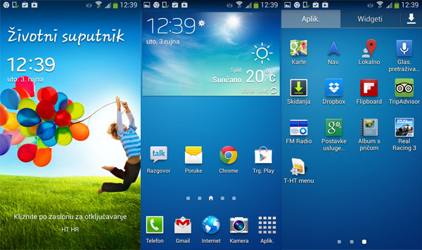 Android 4.2.2 Jelly Bean je verzija Android platforme koju ćete dobiti ako ovih dana kupite Galaxy S4 mini. On će sigurno u bliskoj budućnosti dobiti i Android 4.3, a svaka nova verzija je bolja od prošle. Samsungovo Touchwiz sučelje je identično kao na velikom Galaxyu S4, statusne trake su transparentne, na zaključanom zaslonu možete postavljati widgete i brzo pokretati kameru. Početni zaslon ima maksimalno 7 stranica po kojima se nabacujete svojim prečacima, mapama i widgetima. S vrha zaslona prema dolje povlačite Centar za obavijesti s praktičnim sistemskim sklopkama. Otud možete brzo skočiti i u Postavke.
