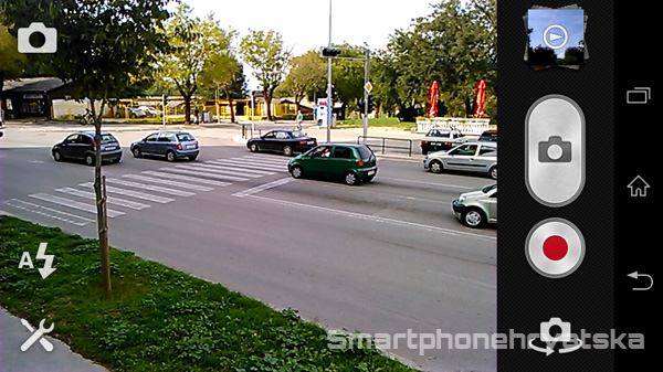 Dvije kamere još uvijek nisu fix za ovaj rang uređaja. Xperia M ih nasreću ima obje. 5 MP s LED bljeskalicom straga i VGA kamera za video pozive sprijeda. Ova stražnja opremljena je autofokusom i fokusom dodirom zaslona pa čak i HDR fotografijom. Preddefinirane scene omogućuju brzo podešavanje postavki prikladnih za situaciju u kojoj fotografirate. U ponudi su i panoramske fotke te razni filtri. Snima videozapise u 720p kvaliteti, a fotke i video u uvjetima dobre rasvjete su OK, dok su oni u mračnijim prigodama naravno dosta lošiji. Svejedno je to kamera koja će vas sasvim zadovoljiti za one fejs fotke ćevapa koje se spremate progutati pa i za više od toga. Plus je dvostupanjska fizička tipka okidača kamere na boku, kojom brzo i pokrećete kameru direktno uz džepa, grudnjaka ili di već držite telefon.