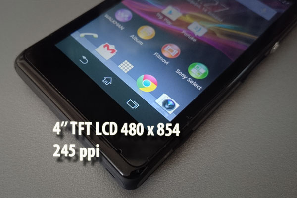 4-inčni TFT zaslon u maniri je ostalih Xperia telefona. Sasvim adekvatnom rezolucijom od 480 x 854 uspijeva donekle nadoknaditi ispran prikaz boja pri onim širim kutovima gledanja i relativno slabu čitljivost na direktnom suncu. Piksele ćete primijetiti ako to baš želite. Za ovaj rang uređaja je to sasvim korektan zaslon, premda bi dosta profitirao od IPS matrice.