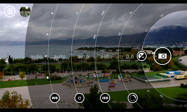 Osim klasične automatike, koju koristi većina usputnih fotografa, moguće podešavati cijelu hrpu toga, a kontrole su zamišljene intuitivno pa ćete povlačenjem virtualne tipke okidača otvoriti cijeli niz kružnih klizača kojima možete kontrolirati balans bijele boje, tip fokusa, ISO vrijednosti, brzinu okidača i osvjetljenje. Uz virtualnu tipku okidača su tipke za odabir video kamere i Smart kamere koja okida rafalno, gore desno je tipka menija, a dolje desno tipka za kamera dodatke iliti Camera Lenses. U gornjem lijevom kutu je virtualna tipka za ulazak u galeriju. Povlačenjem prsta po zaslonu, može se zumirati za vrijeme snimanja fotografija do 3X, a u 720p videu do 6X odnosno 4x u 1080p videu.