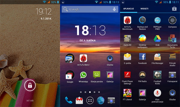 Navigacija sučeljem je prilično glatka, a prijevod sučelja na hrvatski je dobro odrađen i ima samo par stavki koje nisu prevedene s engleskog. Sam izgled sučelja mi se svidio premda je ona zadana tema pomalo dječija. U biti se radi o standardnom AOSP sučelju s kozmetičkim izmjenama, šarenim ikonicama i slično. Izgled možete mijenjati i kroz 4 različite teme među kojima je i onaj nativni AOSP izgled kao na Nexusima. Duljim pritiskom na Home tipku otvara se pregled aplikacija koje rade u pozadini.