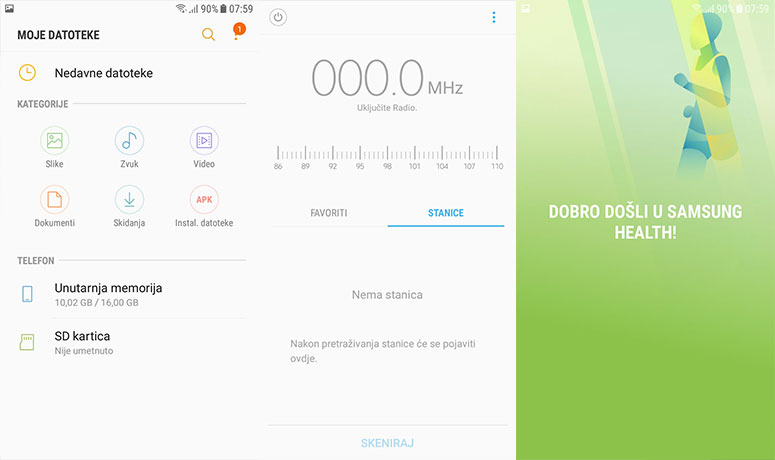 U pogledu multimedije nemam ništa posebno za prijaviti. Samsungova Galerija je kao i na drugim modelima, čuva fotke i reproducira razne formate videozapisa, a Samsungovu Glazbu treba preuzeti iz Galaxy Trgovine jer nije predinstalirana. Zvuk kroz glavni zvučnik na boku je OK, nije baš naročit ali nije ni pretih. 3.5 mm audio izlaz za slušalice nudi pristojnu kvalitetu zvuka i FM Radio.