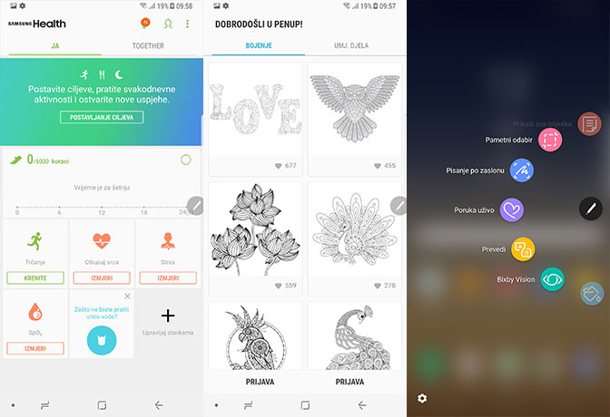 Krajnja lijeva stranica je rezervirana za Bixby – virtualog asistenta koji je od izlaska na tržište naučio i govoriti. Doduše na engleskom. Izvikujući naredbe na engleskom možete odraditi dosta toga i na daljinu. Ako vam je gušt.