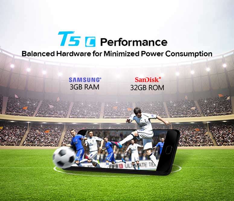 Uz osmojezgreni 1.8 GHz čip, LEAGOO 5Tc ima dvostruku kameru na leđima (SAMSUNG 13.0MP + OV 2.0MP). Sprijeda je 5.5-inčni SHARP FHD IPS LCD zaslon, a ispod haube i 3 GB RAM-a s 32 GB pohrane. Baterija je kapaciteta 3000 mAh i podržava 5V2A brzo punjenje. Čitač otisaka je implementiran sprijeda podno zaslona.