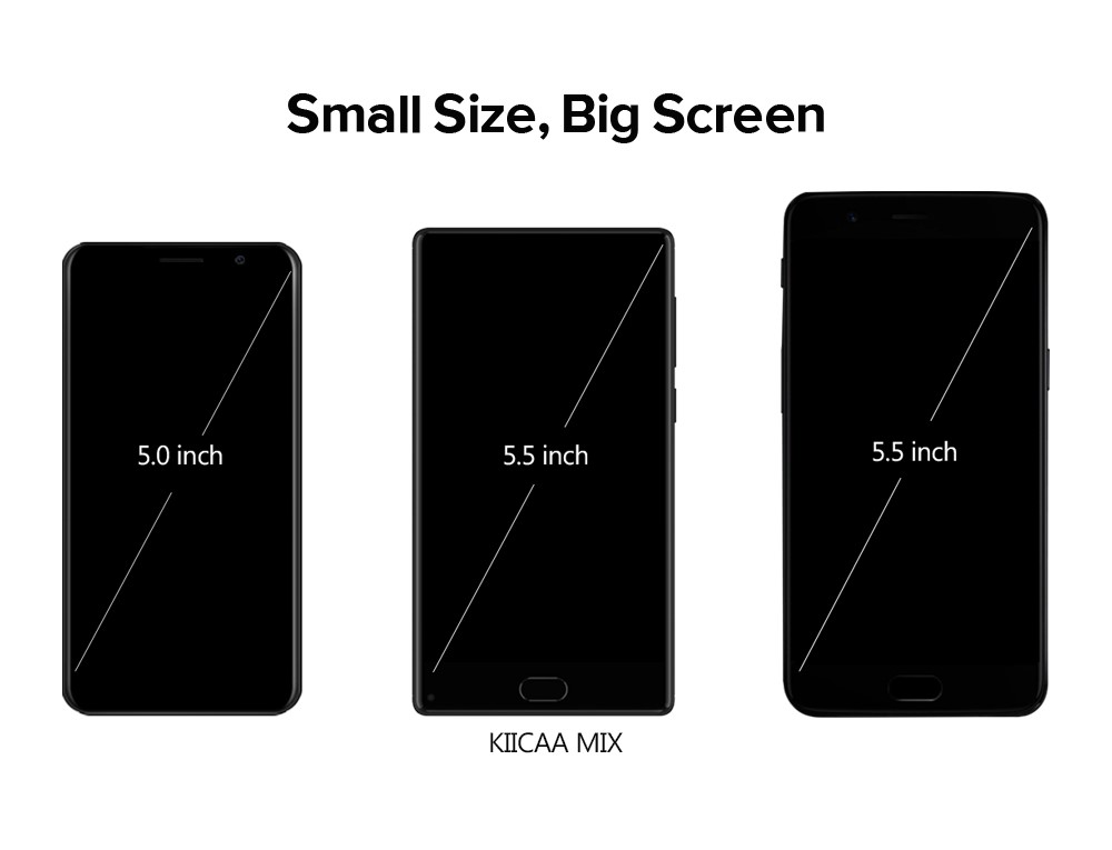 Premda KIICAA MIX ima 5.5-inčni ekran, ukupni gabariti su mu manji od standardnih uređaja s 5.5-inčnim ekranima i bliži je onima s 5” zaslonima pa je tako pogodan za baratanje jednom rukom.