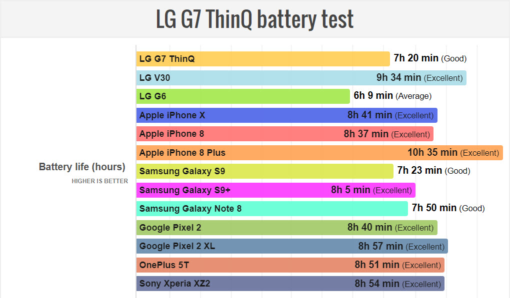 Kao što i sami vidite, autonomija mu je bolja od one na lanjskom LG G6, a nešto slabija od one na LG V30, a usporediva je s autonomijom aktualnog Galaxya S9.