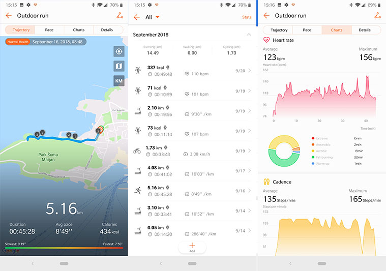 Što se sportskih zadaća tiče, budući da je ovdje riječ o Wear OS-u, za praćenje vaših sportskih pothvata možete koristiti cijelu paletu aplikacija od zadanih Huaweievih preko Google Fit aplikacija, Runkeepera, Runtastica i inih aplikacija iz Trgovine Play. Ja sam najviše koristio Huaweieve jer mi se to činilo najlogičnije iako Google Fit nudi više sportskih aktivnosti ili disciplina ako hoćete.