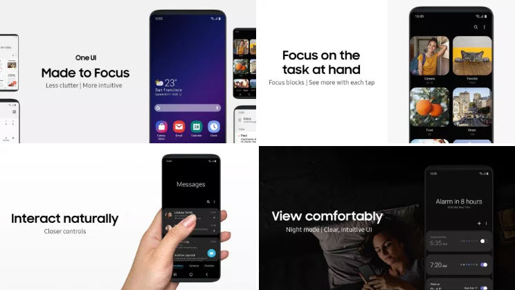 Novi hardver popratit će i redizajnirano Samsungovo sučelje koje nazvaše One UI, a izgleda kao osvježeni Samsung Experience sa još zaobljenijim elementima sučelja, a koristit će veliki Infinity Flex display za rad u čak tri aplikacije odjednom umjesto dosadašnje dvije.