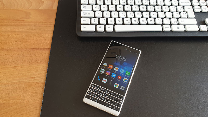 Tipkovnica ovdje diktira sve ostalo pa tako dok na drugim telefonima danas zaslon prekriva praktički cijelu prednjicu uređaja, ovdje zaslon hvata jedva polovicu fronte uređaja. Poviše ekrana su selfie kamera, slušalica poziva i notifikacijska LED-ica, a ispod njega QWERTY tipkovnica s ukupno 35 tipki i čitačem otisaka ispod razmaknice.