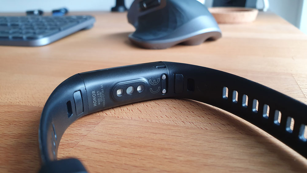 S donje strane kućišta je optički pulsmetar odnosno senzor oksigenacije krvi.