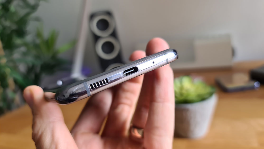 Baš kao i na S20 Ultra i S20 telefonima, lijevi je brid čist, a desni sad nosi gumb kontrole glasnoće i tipku Power, koja zadano duljim pritiskom pokreće Bixby asistenta. On je ove godine ostao bez vlastitog gumba.