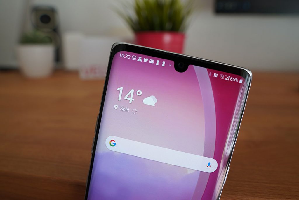 Svakako bitnija stavka pri odabiru telefona od njegova izgleda je zaslon. Nasreću, LG Velvet nije ni tu podbacio. Dapače. Ljubitelje velikih ekrana, Velvet će počastiti 6.8-inčnim P-OLED zaslonom u FHD+ rezoluciji s urezom na vrhu. Zaobljen je po bokovima pa iako je crni okvir ispod i poviše uočljiv izgleda lijepo. Osvježenje je standardnih 60Hz.