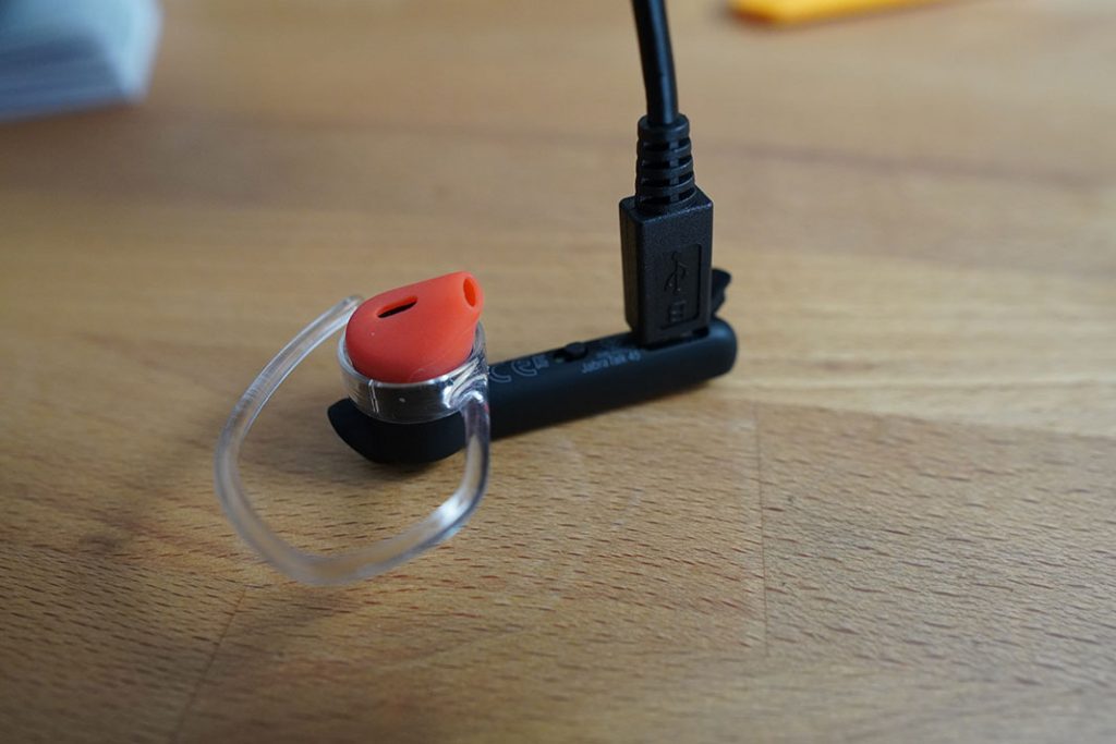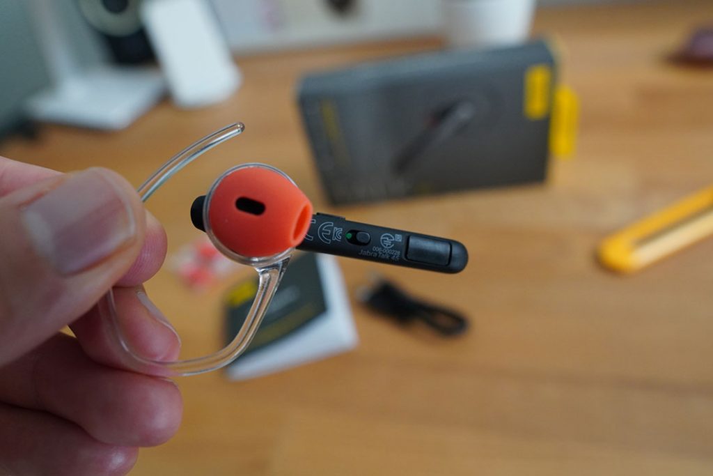Na vrhu je dio koji ulazi u uho. Prekriven je narančastim silikonskim čepićem i uhu je vrlo udoban. Uokolo još ide i prozirna plastična kuka, koja obavija uho. Taj dio možete rotirati kako vam paše ili ga skinuti pa upotrijebiti jedan od dva dodatna silikonska čepića sa silikonskom kukicom koja ulazi u ušku.