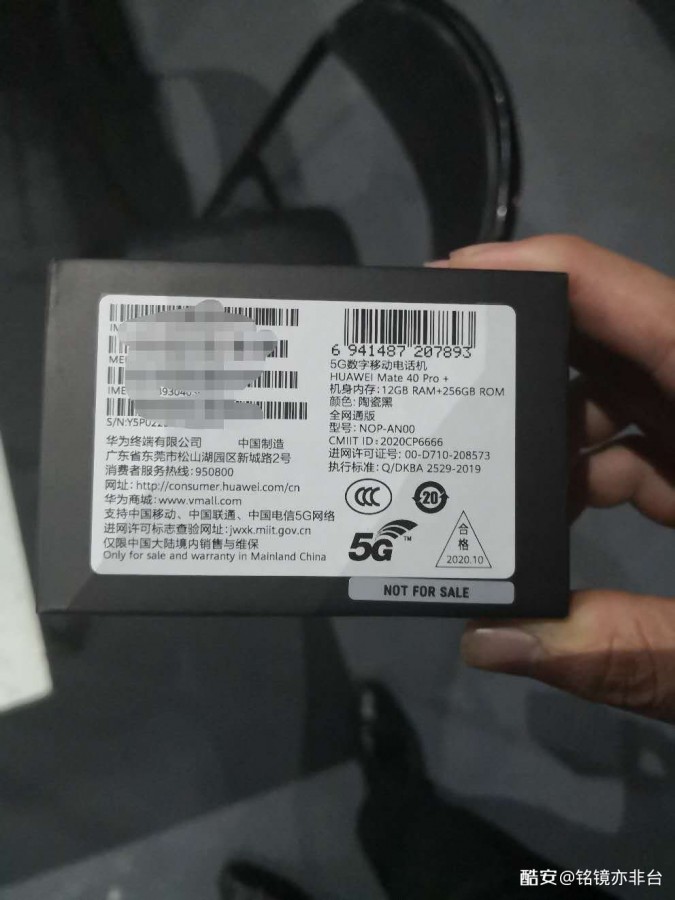 Dvije fotke prikazuju i prodajno pakiranje u kojem će se Mate 40 Pro+ isporučivati. Nosi jasnu oznaku Not for sale, kako to obično biva s tim uređajima za testiranja.