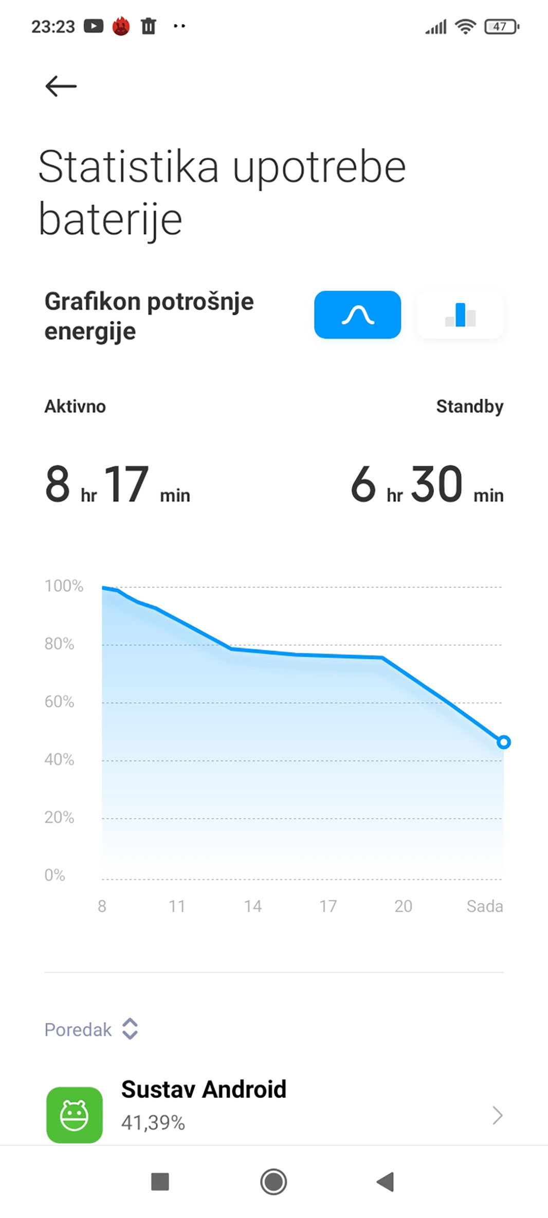 Ono u čemu ovaj telefon jednostavno rastura je izdržljivost odnosno autonomija ili narodski rečeno baterija. Jednostavno traje i traje. Iscijediti tu njegovu bateriju pravi je posao. Na jednom se punjenju pri mješovitoj upotrebi izvlači 10 sati uključena zaslona pa vjerujem da će većina puniti svaku drugu noć ili rjeđe.