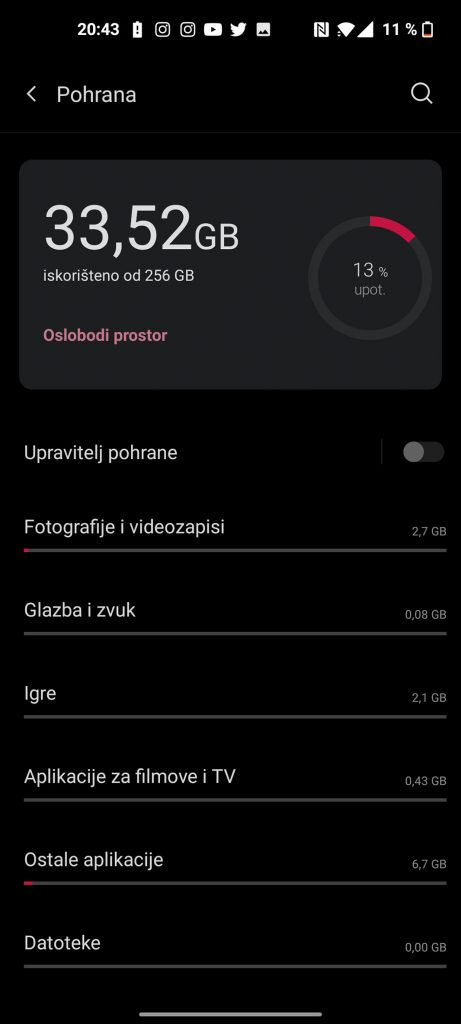 Nema bloatware aplikacija ni oglasa. Uz Googleove tu je tek nekoliko OnePlus aplikacija, koje su realno praktične. OnePlus Switch za lagan transfer podataka sa starog telefona, File Manager i Community aplikacija za razmjenu informacija i iskustava s OnePlus zajednicom.