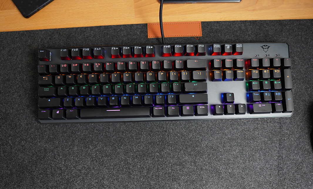 Trust GXT865 ASTA je tipkovnica punog formata, što znači da ima i onaj numerički dio desno, a opremljena je sa sveukupno 104 tipke s još više funkcionalnosti.