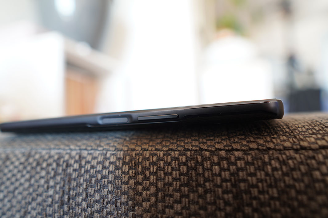 Okvir uređaja je izrađen od polikarbonata. Na lijevoj strani nema ničega, a na desnoj su tipka kontrole glasnoće te utisnuta tipka Power s pristojnim čitačem otisaka.