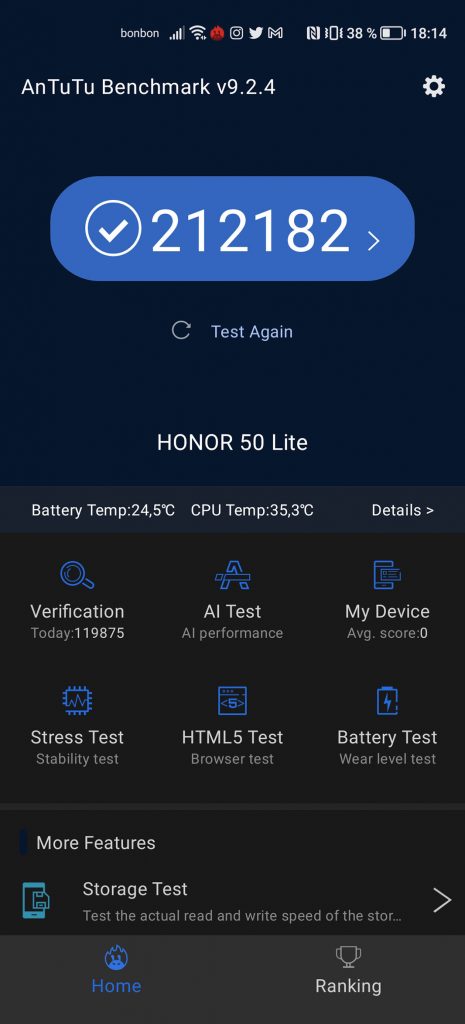Performanse su u zbilji za jednog prosječnog korisnika posve u redu. Honor 50 Lite će odraditi sve što se od njega traži samo malo sporije i s nešto isprekidanim animacijama sučelja. Da on može odraditi puno dokazuje i činjenica da vrlo zahtjevnu igricu Asphalt 9 zapravo vrti posve uredno.
