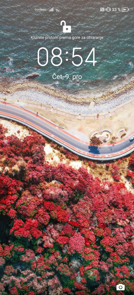 Zaslon zaključavanja je tipičan, a prikazuje vrijeme i datum, prečac za brzi skok u kameru i obavijesti. Ako to ne promijenite, svakim uključivanjem će vam prikazati drugi wallpaper, što može biti zabavno.