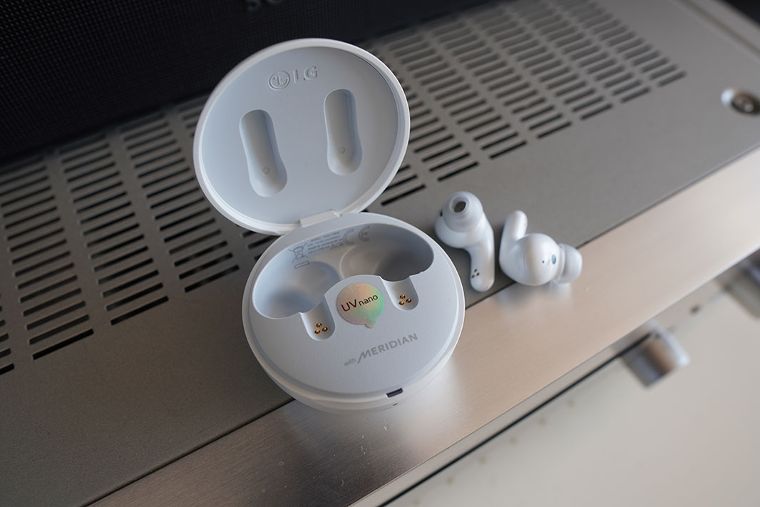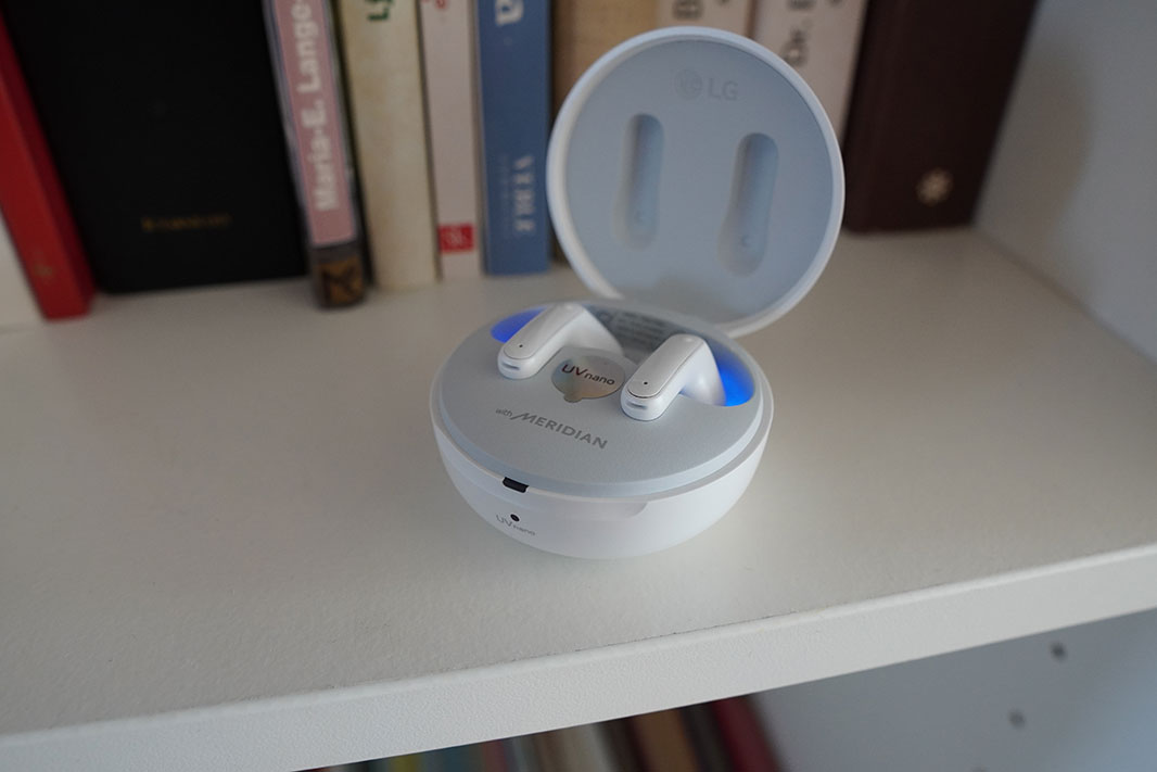 Kako to danas obično biva, LG Tone Free slušalice dolaze u kutijici za punjenje i pohranu, a u ovom slučaju i za dezinfekciju. Kutijica nije prevelika, okruglog je oblika i promjera 55mm. U toj se kutijici slušalice magnetima lijepe za PIN konektore za punjenje, a posebne UVnano lampe u 5 će minuta eliminirati 99.99% bakterija, koje se zdušno razmnožavaju u rešetci zvučnika.