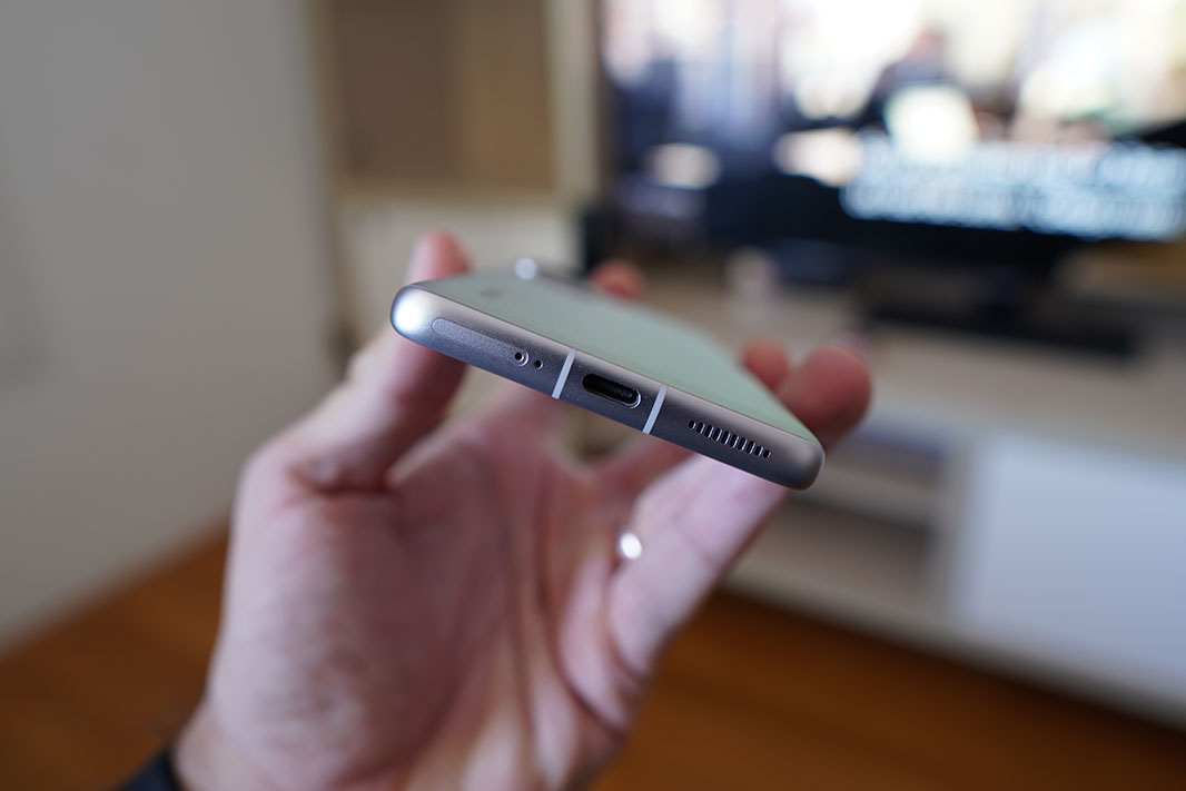 Povezuje ih metalni okvir s manje, više standardnim otvorima i antenskim linijama. Na vrhu telefona je jedan od dva Harman Kardon zvučnika, dok je drugi dolje. Gore su još jedan mikrofon i IR blaster univerzalnog daljinca. Dolje su još glavni mikrofon, USB C utor te ladica za dvije nano SIM kartice. Memorijske kartice ne prima.