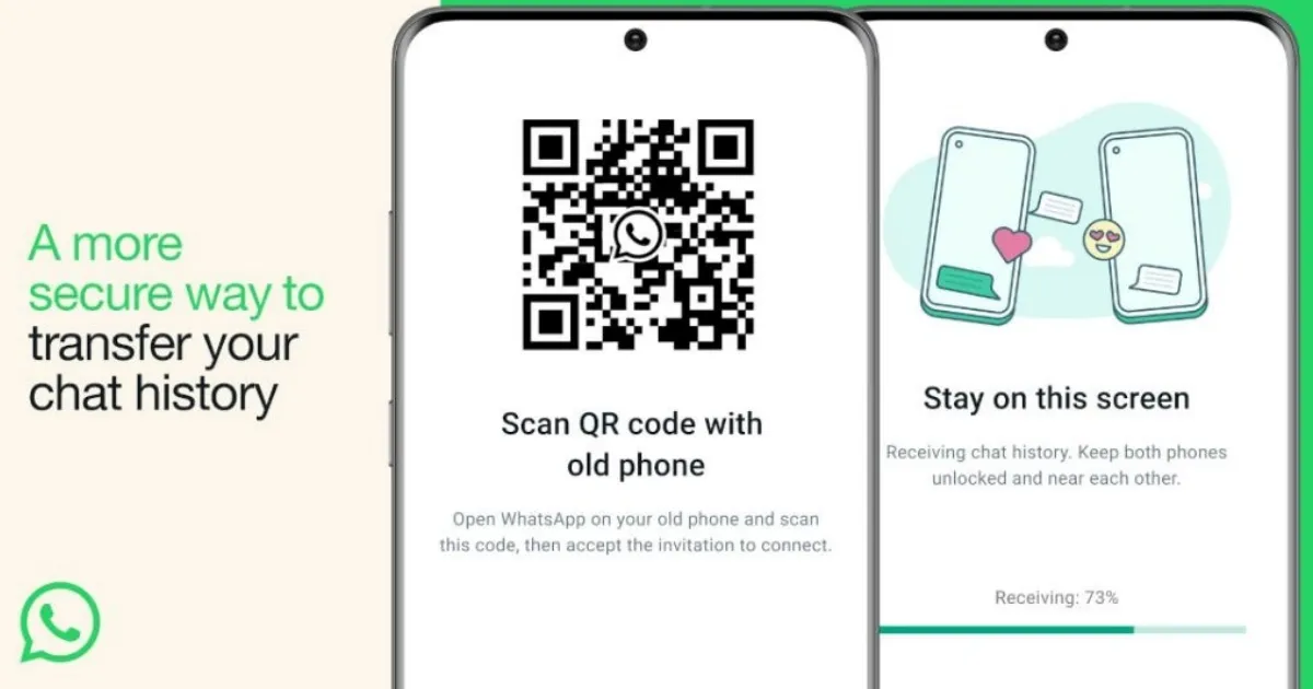 Prilikom postavljanja WhatsAppa na novom telefonu odabrat ćete chat transfer i uz pomoć QR koda povezati se sa starim telefonom, nakon čega će uslijediti prijenos svih poruka i dijeljenih medija i datoteka.