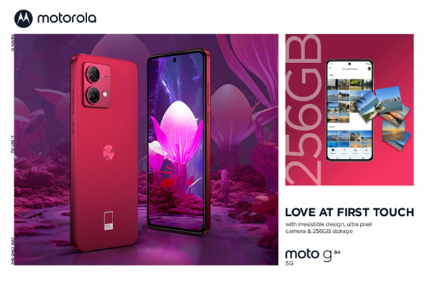 Jačajući Motorolinu misiju u pružanju vrhunskih značajki po pristupačnoj cijeni, Motorola danas najavljuje lansiranje novog moto g84 5G, koji nudi iskustvo ljubavi na prvi dodir; s završetkom od veganske kože. Moto g84 5G nudi moderan dizajn u jedinstvenim bojama i oštrijim detaljima kamere, dok uključuje sustav kamere s OIS-om, tehnologiju ultra piksela i impresivan 6,5” beskonačni kontrastni pOLED zaslon.