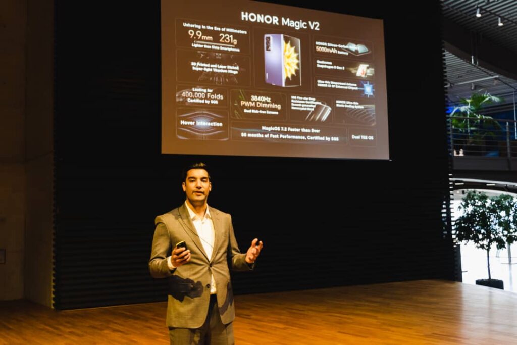 Nakon dvije godine razvoja, HONOR Magic V2 uključuje više od 210 tehnoloških otkrića, kao što su ultratanka baterija, rashladni sustav, šarke, Type-C konektor, zaslon, jedinica zvučnika, itd. HONOR Magic V2 je najtanji preklopni pametni telefon koji se preklapa prema unutra, a teži svega 231 g te ima samo 9,9 mm kada je preklopljen.[1] Osim toga, uređaj sadrži i novu generaciju silicij-ugljične dvostruke baterije prosječne debljine od samo 2,72 mm, koja postiže visoki kapacitet do 5000 mAh u prostoru tankog i laganog sklopivog vodećeg kućišta.