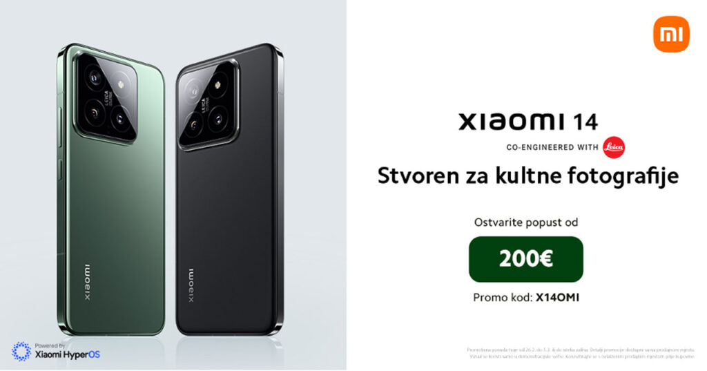 Xiaomi 14 dolazi s 1 varijantom pohrane (12 + 512 GB), već od 1.099 EUR. Flash prodaja s 200 EUR popusta počinje 26. veljače, dostupna na www.xiaomi.com.hr/xiaomi14