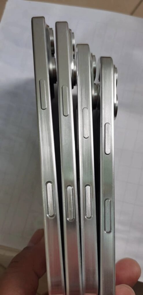Nadalje pogled s boka potvrđuje implementaciju Akcijskog gumba na sva četiri modela. On je lani na iPhone 15 Pro i 15 Pro Max-u zamijenio nekadašnji prekidač zvučnog profila.