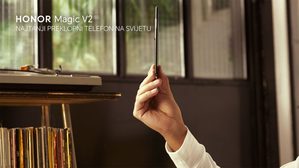HONOR Magic V2, sa svojim ključnim specifikacijama, poput ultratankog profila od 9,9 mm[1] kada je preklopljen, težinom od samo 231 grama[2], robusnom baterijom od 5000 mAh koja nadopunjuje njegove izvanredne značajke te zaslonom s certifikatom za njegu očiju[3], pametni je preklopni telefon bez kompromisa. On ne predstavlja samo korak naprijed u tehnologiji preklopnih telefona, već korak prema budućnosti u kojoj se tehnologija neprimjetno prilagođava životnom stilu korisnika, omogućujući produktivnost, zabavu i komunikaciju bez kompromisa.
