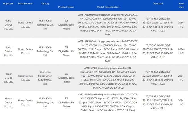 HONOR 300 serija je osvanula na certifikaciji kineske kompanije 3C i otkrila sveukupno četiri modela: Honor AMP-AN00, AMP-AN10, AMM-AN00 i AMG-AN00.