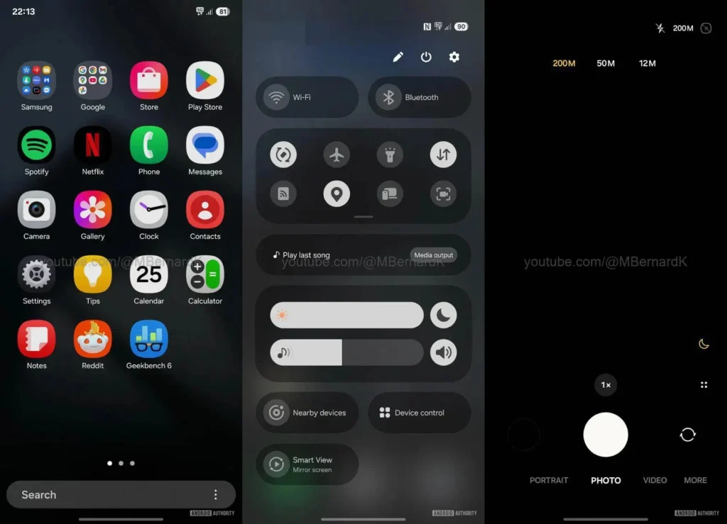 Ovi nije prvi put da vidimo One UI 7 pa nam ovi screenshotovi realno ne otkrivaju ništa novo. Vidimo donekle drugačije ikonice aplikacija, redizajnirani Kontrolni Centar, navodno odvojen od Centra za obavijesti kao i sučelje kamere.