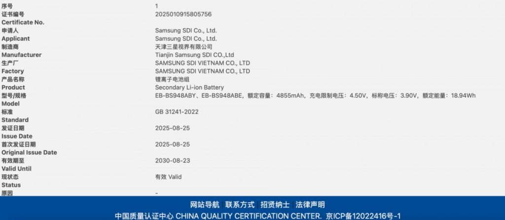 Za početak loša vijest: kapacitet baterije neće se mijenjati. Prema certifikatu kineskog Quality Certification Centra, S26 Ultra dolazi s baterijom stvarnog kapaciteta 4.855 mAh, što znači tipičnih 5.000 mAh – isto kao i kod S25 Ultra modela.