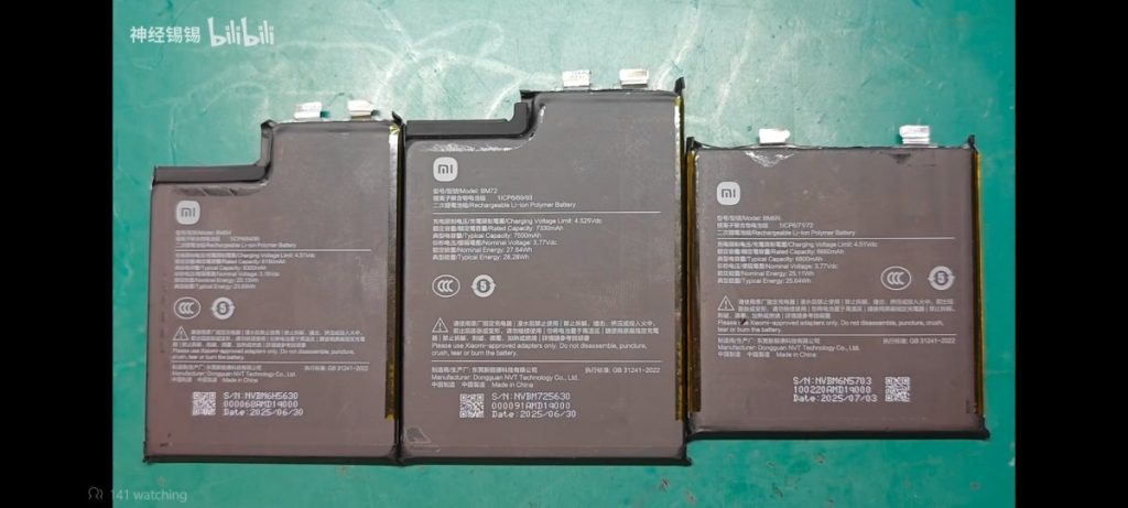Zanimljivo je da će Pro imati nešto manji kapacitet baterije od običnog modela, što se povezuje s bržim punjenjem koje zahtijeva drugačiju strukturu ćelija. Uz to, fotografije pokazuju i da su baterije prilično teške – primjerice, BM72 ima masu od 81,5 grama, što bi je moglo učiniti drugim najtežim komponentom uređaja, odmah nakon okvira.