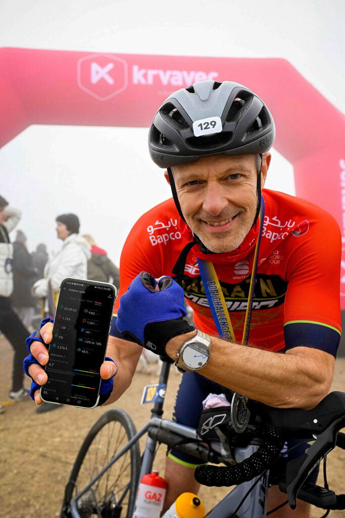 „Najveći problem mi je bilo držati ritam. Ne poznajem sebe i svoje granice na biciklu, ali mi je tu jako pomogao sat Huawei Watch GT 6 Pro, koji mi je govorio na koliko otkucaja mi je srce. Programirao sam se na 150 otkucaja s kratkim izletima preko 160. Sve je bilo ok do uspona od 15 %, a onda je i karbonski bicikl od 7 kg postao težak. Već nakon nekoliko kilometara Pogačar je proletio doslovno pokraj mene, tako da sam osjetio i zapuh vjetra. Nevjerojatno je koliko snage taj čovjek ima. Ja sam jedva hvatao zrak, dok je Pogi dobacivao publici.“