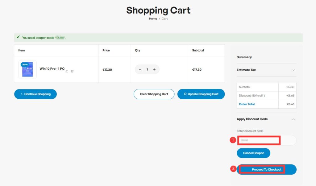 - Dodajte proizvod u košaricu i unesite kupon kod
